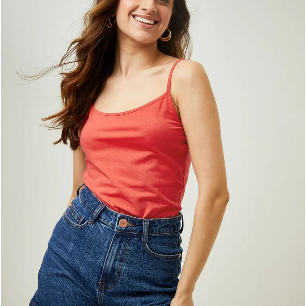 Supplier Women's Cotton Scoop Neck Adjustable Spaghetti Strap Color Full Cami Tank Tops